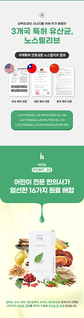 - 노스릴리브: 미국, 중국, 대만에서 특허를 받은 유산균으로, 호흡기 건강에 특화된 기능을 갖고 있어요.